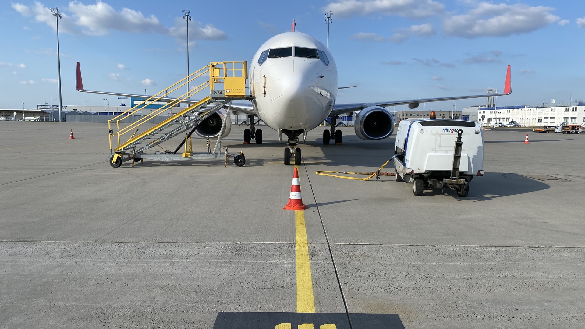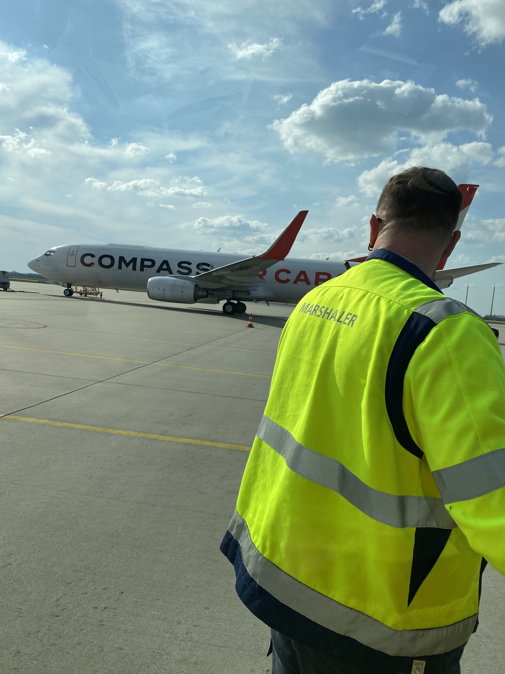 Was dann kam, war fast noch surrealer: Ein Follow-Me-Fahrzeug holte uns ab und lotste uns zur Parkposition. Dort wurden wir mit Einweisung per Kellen eingewiesen – wie ein echter VIP. Der Blick zurück über die Schulter, rüber zur riesigen Runway, war einfach nur: Wow.
