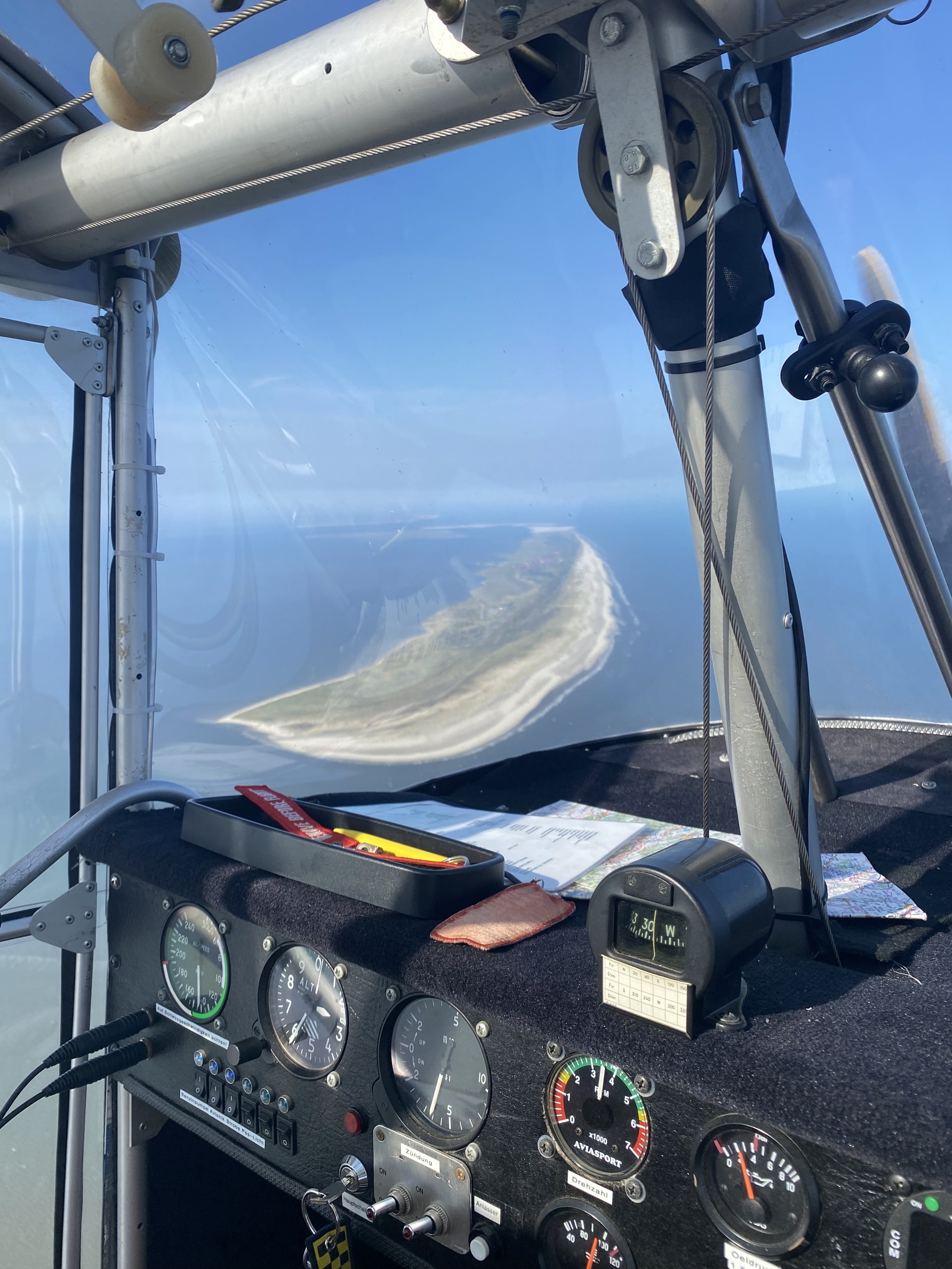 Die ersten Flüge bestanden vor allem aus Eingewöhnung und Airwork – Platzrunden, Trudeln, Langsamflug, Motormanagement. Dann ging’s an die Streckenflüge: Einmal mit Lehrer, einmal solo.