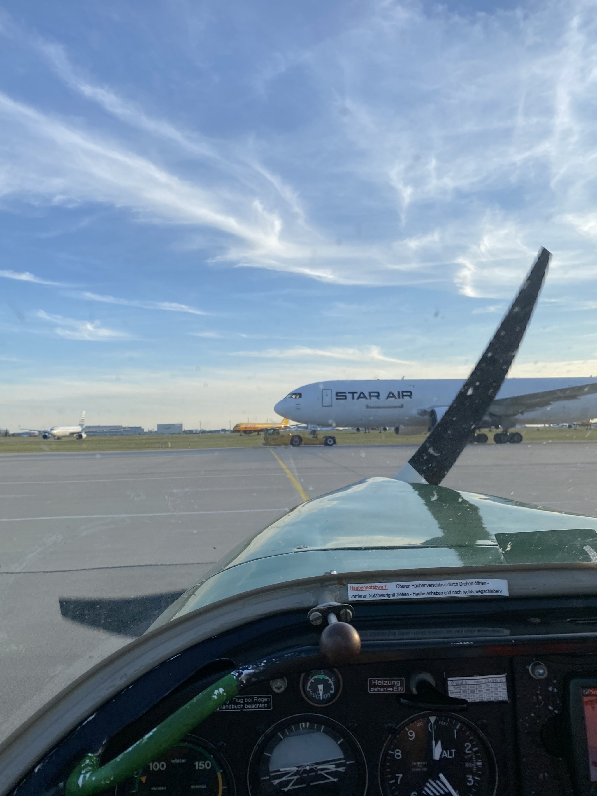 Nach einer kurzen Pause auf dem Vorfeld und ein paar Fotos ging es dann direkt zurück nach Taucha. Für meinen Begleiter war der Flug definitiv hilfreich, um mehr Sicherheit im Funk zu gewinnen – und vielleicht ein kleiner Motivationsschub, sich beim nächsten Mal selbst ans Mikro zu trauen.